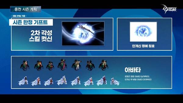 유저들이 고대하는 던파 신규 시즌 중천은 2025년 1월로 앞당겨 오픈될 예정이다. 장비 옵션 성장 시스템은 9월 5일 삭제된다. 커스텀 에픽도 중천 시즌에서 완전히 교체된다. 이미 장비 옵션을 모두 성장시킨 풀 60작 유저에게는 명예 보상과 중천 시즌 종결급 보주가 보상으로 지급될 예정이다.