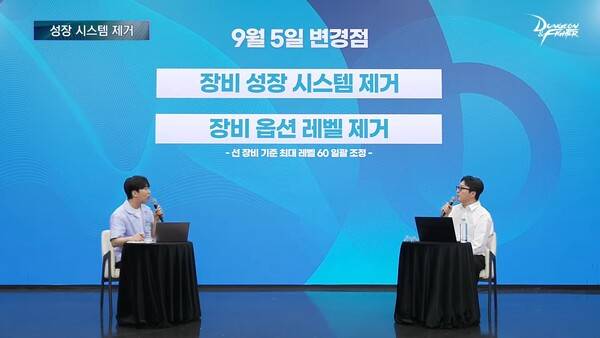 9월 5일 성장 시스템과 장비 옵션 레벨은 인 게임 내에서 완전히 사라진다. 선 장비 기준 최대 레벨 60으로 일괄 조정되며, 60작 유저에게 명예 보상을, 전 유저에게 성장 수준에 따른 보상을 지급할 예정이다.