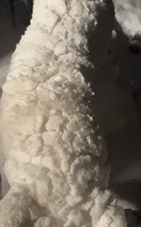 자신의 반려견이 맞는지 얼굴을 확인해야 할 정도였습니다. 온몸에 눈이 뒤덮여서 순백의 양처럼 보였습니다.