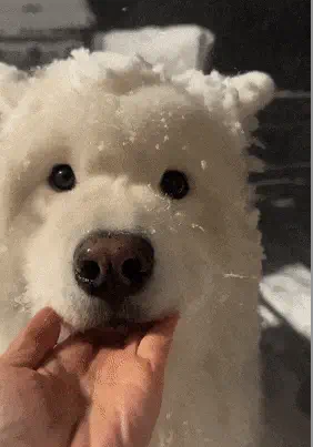 눈 때문에 토실토실한 한 마리의 어린양으로 변한 사모예드의 귀여움이 예술입니다!