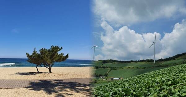 해변 뒤쪽으로 해송숲이 자리 잡고 있어 여름에는 그늘을 만들어주고, 겨울에는 눈이 솔잎 위로 자리 잡아 아름다운 경관을 자아내는데요.