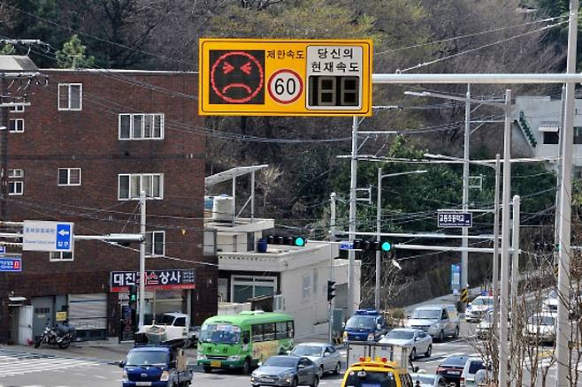 서울시 역시 비슷한 방식의 표지판을 설치했다. 운전자가 어린이 보호구역에서 시속 30km를 위반하면 찡그린 표정과 함께 '천천히'라는 문구가 나타난다. 그에 반해 처음부터 규정 속도를 준수하거나 속도를 줄이는 행동이 나타나면 웃는 얼굴과 '고마워요'라는 문구를 내보내는 방식으로 운영되는 것이다.