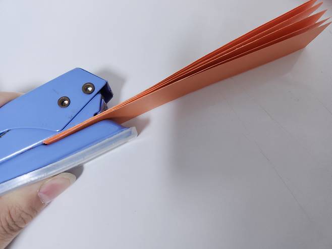 그리고 펀치로 끝에 구멍을 뚫어주세요.