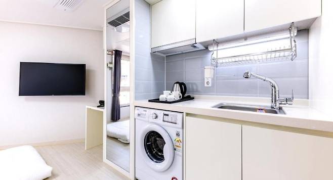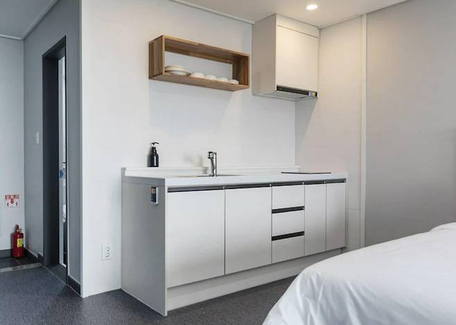 신신호텔 서귀포는 합리적인 투숙비용과 효율적인 객실 구조를 갖춘 신상 호텔이다. 제주도 한달살기에 최적화되었다고 할 수 있다. 객실 내부에는 미니주방과 세탁 시설이 마련되어 있어 장기 투숙객들이 편리하게 머물 수 있다.