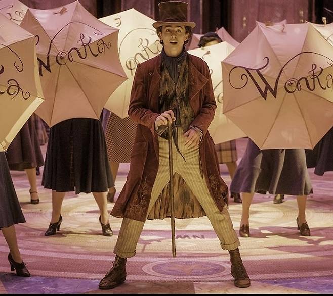 '콜 미 바이 유어 네임' '레이디 버드' '듄' 등으로 국내에도 많은 팬을 거느리는 티모시 샬라메가 타이틀롤 웡카를 연기했다.