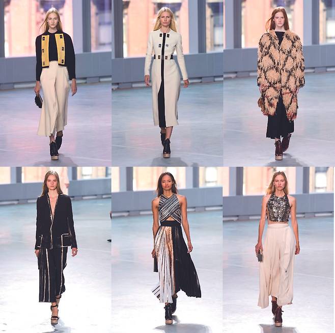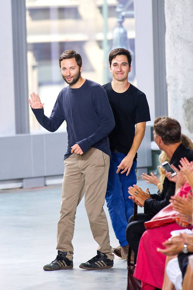파슨스 디자인 스쿨에서 처음 만난 잭 맥콜로와 라자로 에르난데스는 ‘프로엔자슐러(Proenza Schouler)’를 함께 설립해 브랜드를 23년간 이끌었다. 졸업과 동시에 ‘올해의 디자이너’로 선정되면서 단번에 업계를 선도하는 위치에 올라섰고, CFDA ‘올해의 디자이너’와 ‘올해의 액세서리’ 상을 다섯 차례 수상하고 그 밖에도 권위 있는 상을 다수 수상했다. 두 디자이너 어머니의 결혼 전 이름에서 파생된 브랜드 이름이 꽤나 흥미로운데, 오롯이 '자기' 중심으로 삶이 흘러갔을 어머니이기 전 한 여성을 대변하듯 프로엔자 슐러는 여성을 위한 웨어러블하면서도 세련된 실루엣의 레디투웨어와 액세서리 라인을 꿋꿋이 전개해왔다. 뉴욕패션위크가 전체적으로 하락세를 타게 된 영향이었을까? 시즌을 거듭할수록 프로엔자슐러에 대한 대중의 관심이 조금씩 식어가던 참이다. 클래식하면서도 모던한 감성을 주무르는 브랜드가 여럿 생겨났고, 업계의 레이더망 역시 밀란과 파리에 집중된 탓도 있겠다. 브랜드 내외부 상황이 어찌됐건 이 듀오 디자이너가 구사하는 견고한 테크닉만은 여전했다.