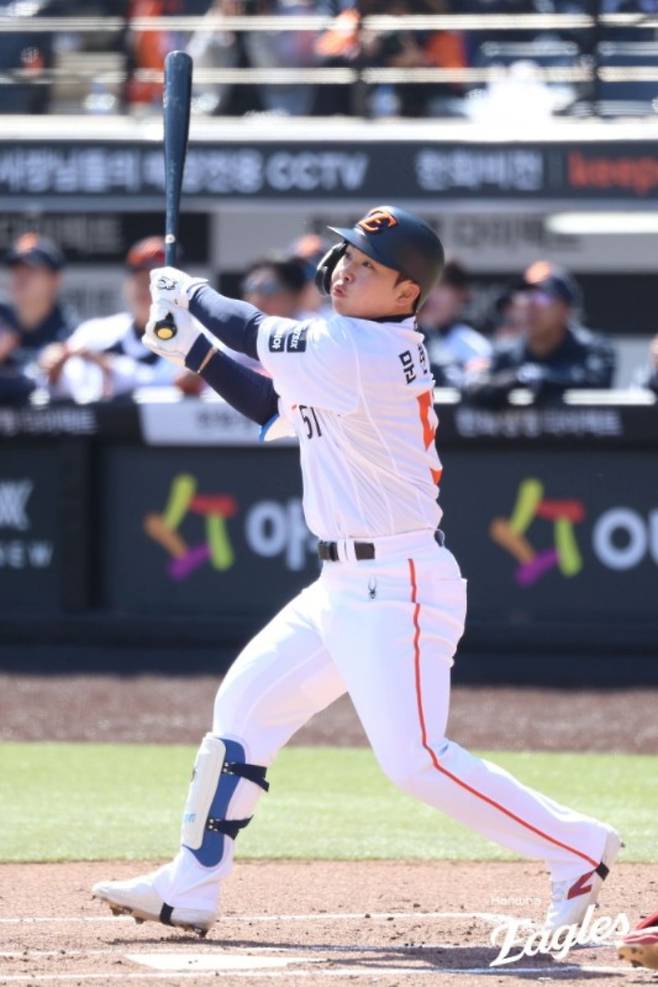 홈 팬들의 박수를 받으며 첫 타석에 들어선 문현빈은 1회말 1사 1루에서 좌익수 뜬공으로 물러났다. 하지만 다음 타석에서 아쉬움을 만회했다. 한화가 1-0으로 앞선 3회말 1사 1, 3루에서 KIA의 두 번째 투수 김현수를 상대로 2타점 2루타를 때렸다.