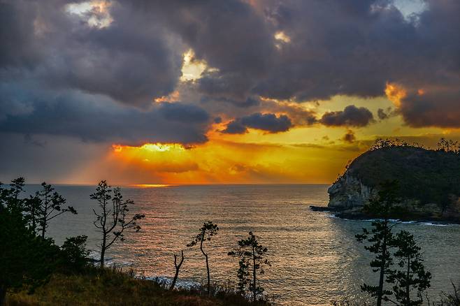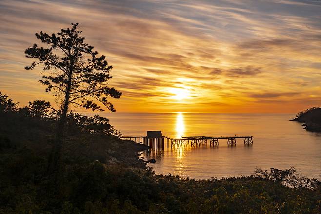 대둔도는 흑산도에 딸린 작은 섬이다. 여행지로 많이 알려지지는 않았지만 이 섬에는 역대급 낙조 출사지가 있다. 도목마을 선착장 끝에 우뚝 선 높이 15m의 바위가 그것이다. 앞뒤로 뻥 뚫려 있는 이 바위를 섬사람들은 '터널바위'라 부른다. 해 질 무렵 터널바위의 커다란 구멍으로는 신기하게도 낙조가 모습을 드러낸다. 마치 횡재한 느낌이 드는 터널바위에서의 작품 한 장을 위해 사진작가들도 알음알음 찾아든다.