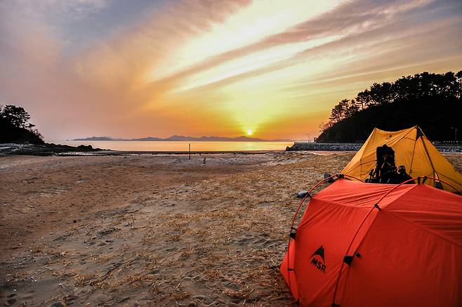 하의도의 부속섬 신도, 편의상 하의신도라고 불리는 이 섬으로 가기 위해선 목포를 떠나 하의도에서 한 번 더 배를 갈아타야 한다. 이런 낙도에 우리나라에서 15대 해수욕장으로 꼽히는 아름다운 해변, 신도해변이 있다. 하루가 저물 때면 붉은 기운이 밀려와 해변 좌측의 무인도 항도를 점령하고 앞바다와 백사장까지 물들인다. 유난히 붉은 노을의 발원지는 우이도의 부속섬 동소우이도다. 하의신도에서는 태양이 수평선 너머로 사라졌다고 해서 시야를 접어서는 안 된다. 신비한 색의 조화는 일몰 후 본격적으로 시작될 테니까.
