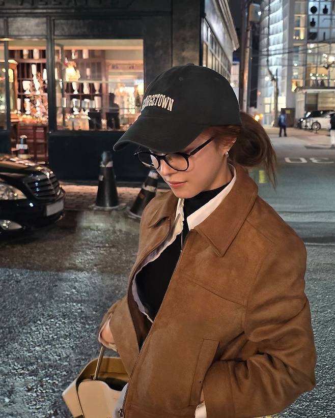 캐주얼한 모자와 얇은 안경까지 더해지니까, 도시적인 무드와 여행 온 듯한 편안함이 동시에 느껴졌어요.