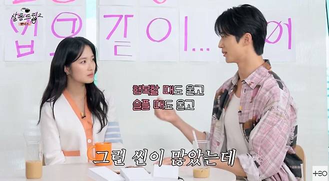 이에 당사자인 김혜윤은 “업고 튀고 싶었다니, 나 이 얘기는 처음 듣는다”라며 부끄러워했다. “메이킹 필름을 보면 컷 소리가 난 뒤에도 계속 손을 잡고 있던데 드라마에 빠진 사람들은 그런 부분에 과몰입을 하게 된다”라는 장도연의 말엔 “내가 우는 장면이 많다 보니 ‘고생했다’ 느낌의 터치”라고 했다.