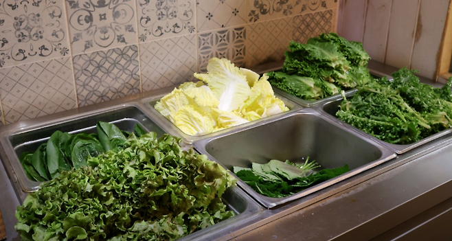 ▶ 이 집의 가장 큰 매력은 셀프바에서 쌈채소와 반찬을 원하는 만큼 가져다 먹을 수 있다는 점이에요.