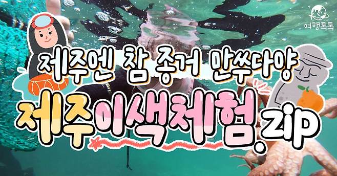 제주도 곳곳에 위치한 해녀체험 업체에서는 제주도 해녀의 역사와 문화에 대한 설명을 들은 뒤 직접 해녀복을 착용하고 바다에 들어가 해산물을 채취하는 이색적인 체험을 할 수 있는데요.