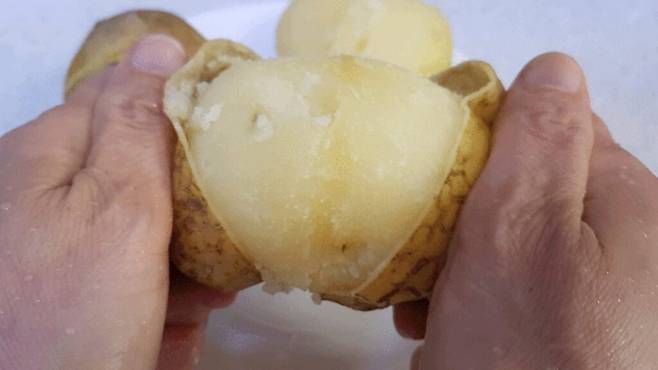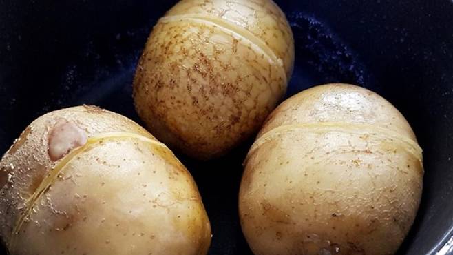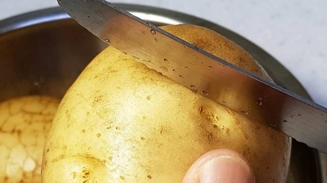 더 이상 감자 그냥 삶지 마시고, 중앙에 칼집을 내어 더욱 맛있는 삶은 감자 즐겨 보세요!