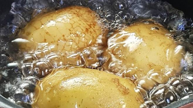 처음에는 뚜껑 덮고 강불에서 끓이세요. 물이 끓어오르기 시작하면 10~15분간 더 끓여 줍니다. 시간이 지나면 중불로 줄이고 10~15분 더 끓이세요. 이후 젓가락으로 한번 찔러보세요. 만약 젓가락 쑥! 하고 들어 간다면 다 익었다는 신호입니다.