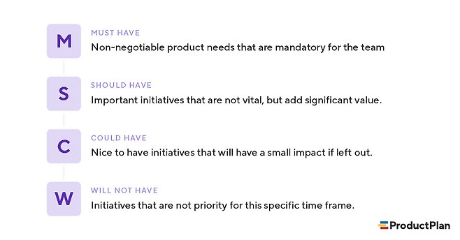 MoSCoW는 요구사항의 우선순위를 정하는 간편한 방법론으로 Must Have, Should Have, Could Have, Won’t Have의 줄임말 입니다. 오라클에서 근무하던 개발자 Dai Clegg가 제품 릴리즈에 대한 개발 작업 중 우선 순위를 쉽게 설정하기 위해 만들었습니다.