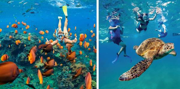 이곳에서 즐기는 스노클링 투어에서는 형형색색의 물고기 떼와 푸른바다거북 등 다양한 생물들을 볼 수 있는 터틀타운까지 방문해 볼 수 있다고 하는데요. 11월부터 3월 사이에는 우기라 혹등고래를 만나볼 수도 있습니다.