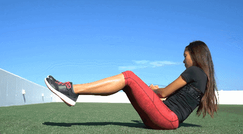 매트에 앉아 상체를 뒤로 약간 젖히고, 다리를 공중으로 들어 무릎을 약간 구부립니다. 이때 발은 바닥에서 떨어져 있어야 합니다. 상체를 왼쪽으로 비틀었다가 원래 위치로 돌아오고, 다시 오른쪽으로 비틀었다가 돌아옵니다.