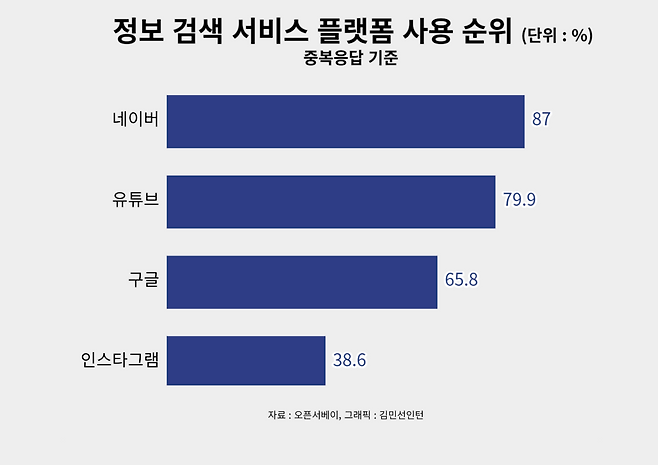정보 검색 서비스 플랫폼 사용 순위에서