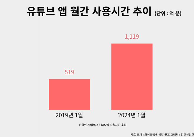 <유튜브에 꽂힌 한국인들...“1인당 월평균 40시간 넘게 본다”>를