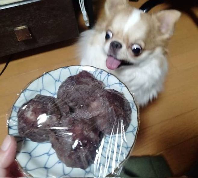 다행히 떡은 비닐에 싸여 있어서 치와와 강아지 타마오의 계획은 실패로 돌아갔는데요. 정말 못 말리는 식탐이 아닌가요.