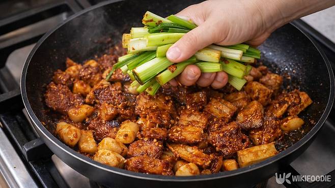 대파는 오래 볶지 않는 것이 좋다. 숨이 살짝 죽을 정도까지만 볶아야 파 향이 살아 있다.