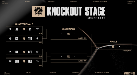 리그 오브 레전드 2025 월드 챔피언십(이하 월즈) 8강 대진이 확정됐다.