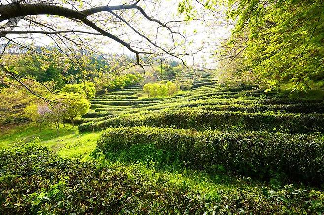 두륜산 미로파크 인근에 조성된 녹차밭에는 현재 약 14만 주의 녹차나무가 친환경 방식으로 관리되고 있습니다.