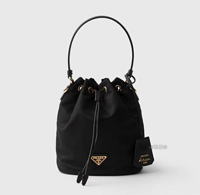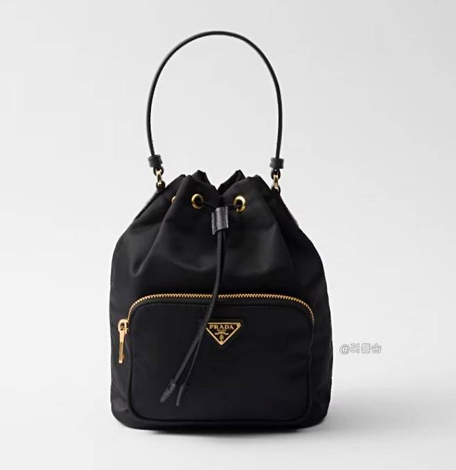 클래식한 버킷백 스타일을 프라다만의 감성으로 재탄생시킨 모델입니다. 드로우스트링 디자인으로 소지품을 안전하게 보관할 수 있으며, 손에 가볍게 들어주기만 해도 시크한 스타일을 완성할 수 있습니다.