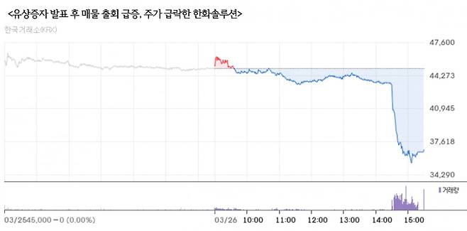 한화솔루션이 대규모 유상증자에 나서자 주가가 급락했다.
