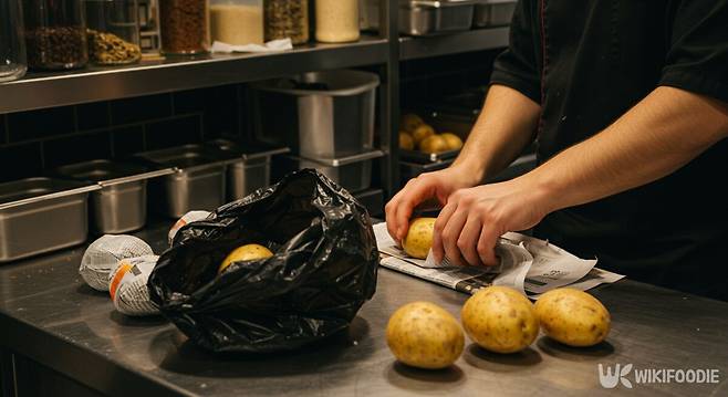 감자를 그대로 봉지에 넣으면 표면에 맺힌 수분으로 인해 쉽게 썩는다. 반면 신문지로 싸서 검은 봉지나 위생백에 넣으면 습기와 빛을 모두 막을 수 있다. 감자 보관 기간을 길게 유지하려면 이 과정을 반드시 거쳐야 한다.