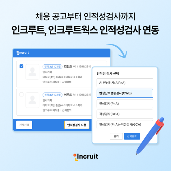 인크루트웍스 인적성검사 연동 서비스로 기업회원 편의성 강화