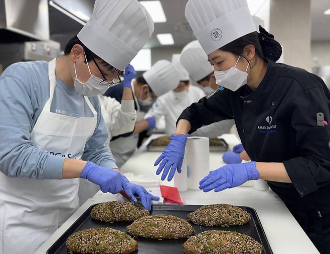 참가자들은 파리크라상 기술교육팀 전문 강사의 지도로 통곡물 깜빠뉴, 멀티그레인 호밀빵 등 최근 각광 받고 있는 건강빵과 고급 유럽식 디저트인 타르트 등을 직접 만들어 보는 시간을 가졌다.