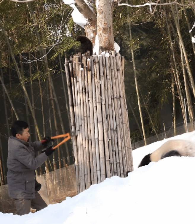 지난 1월 12일, 높은 나무를 타고 내려오던 루이바오가 나무발 사이에 끼어 못나오는 아찔한 상황이 있었는데요.
