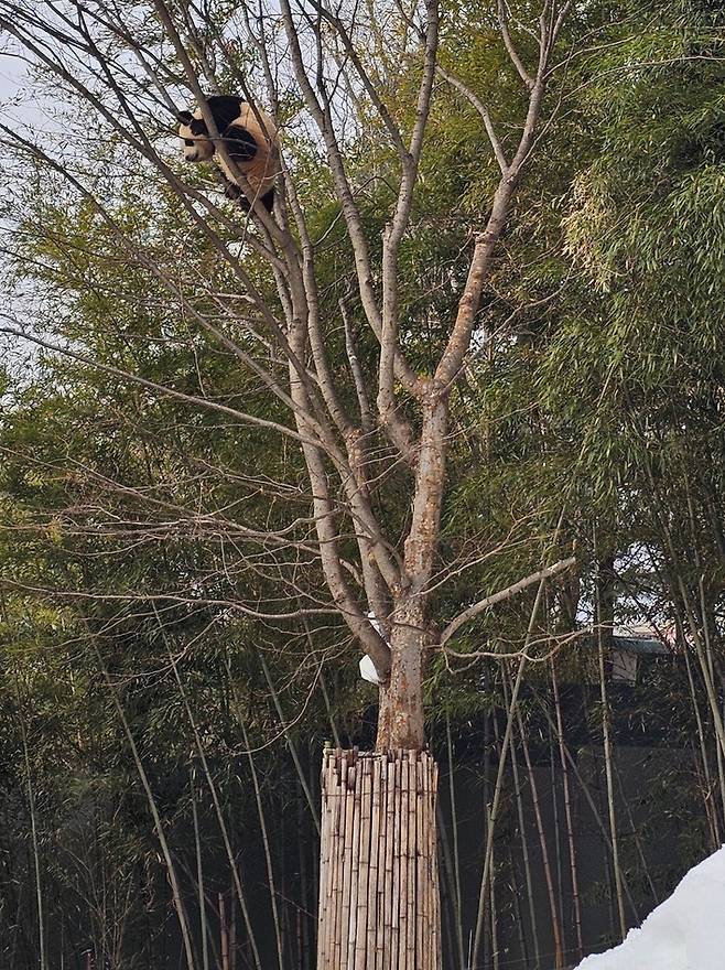 하지만 루박쨔 루이바오는 또 다시 그 나무를 오르고 싶어했고, 17일 오늘 또 한번 사고가 났던 나무를 높이 올라갔다고 합니다.