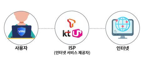 우선, VPN을 사용하지 않을 때는 위 그림과 같이 사용자의 컴퓨터가 KT, SK, LG 등의 인터넷 서비스 제공자(ISP)를 통해 인터넷에 직접 연결됩니다.