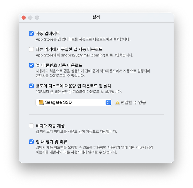 첫 번째 외장 SSD에 대용량 앱 설치