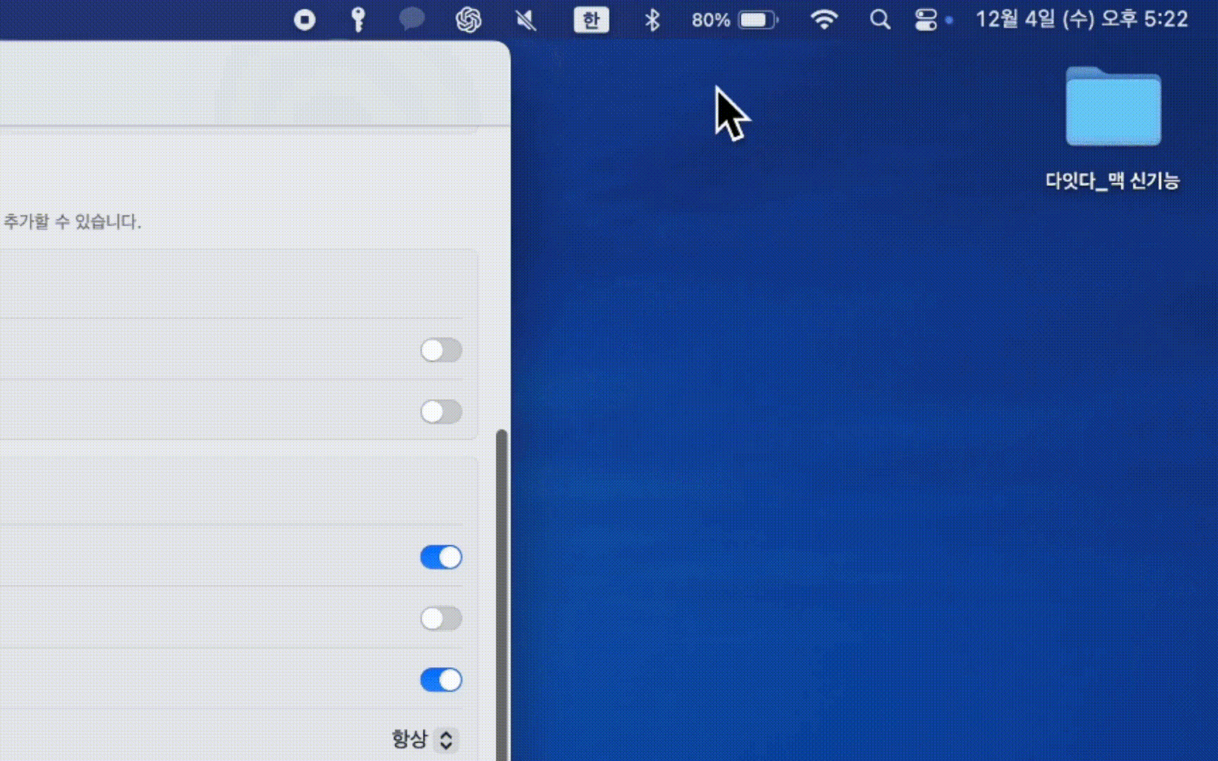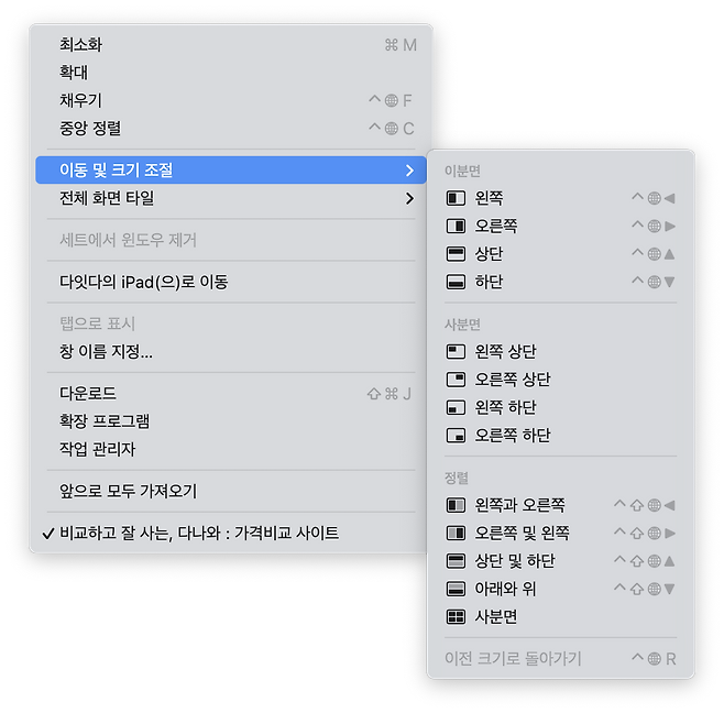 개인적으로 윈도우에서 맥으로 넘어왔을 때 사소하지만 어색하고 불편했던 점이 윈도우 크기 조절 버튼과 종료 버튼이 반대편에 있다는 것이었다. 윈도우 크기 조절하는 것도 윈도우 환경과 비교해서 불편해 윈도우 타일을 정렬해주는 별도의 앱을 설치해 사용하기도 했는데 이제 그럴 필요가 없어졌다.