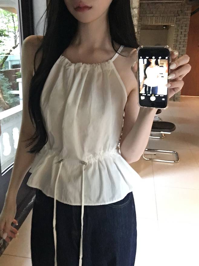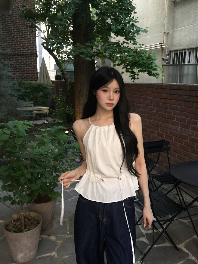 🍃 Look 1. 여름 휘뚤마뚤 코디! 나시 스트링 블라우스