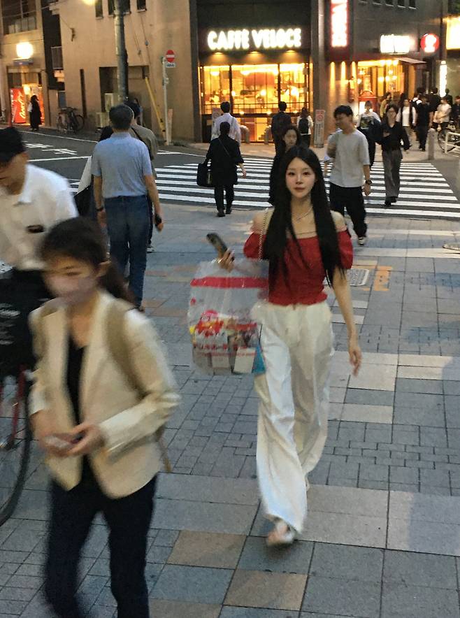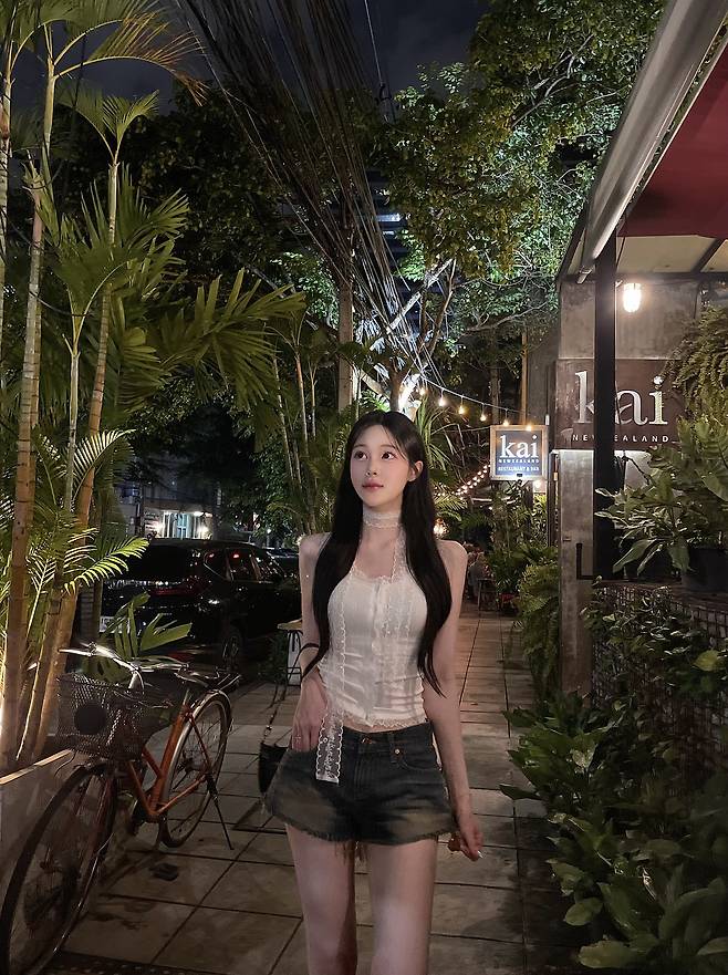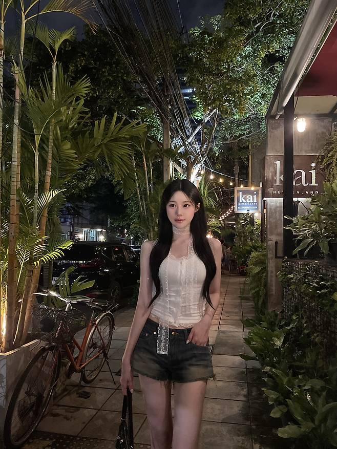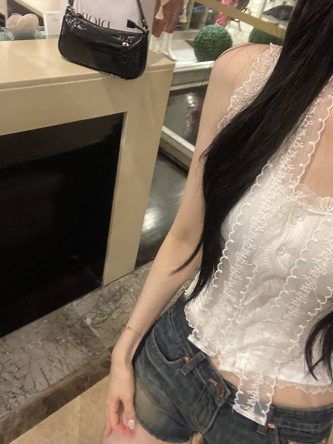멀리서 봤을 때도 배꼽이나 허리 노출이 과하지 않아서 데이트룩으로도 충분히 활용 가능해요.
