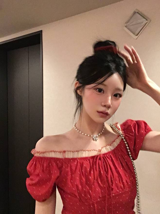 전체적인 무드가 발랄하고 러블리하면서도 존재감 확실한 룩으로 정리돼요.