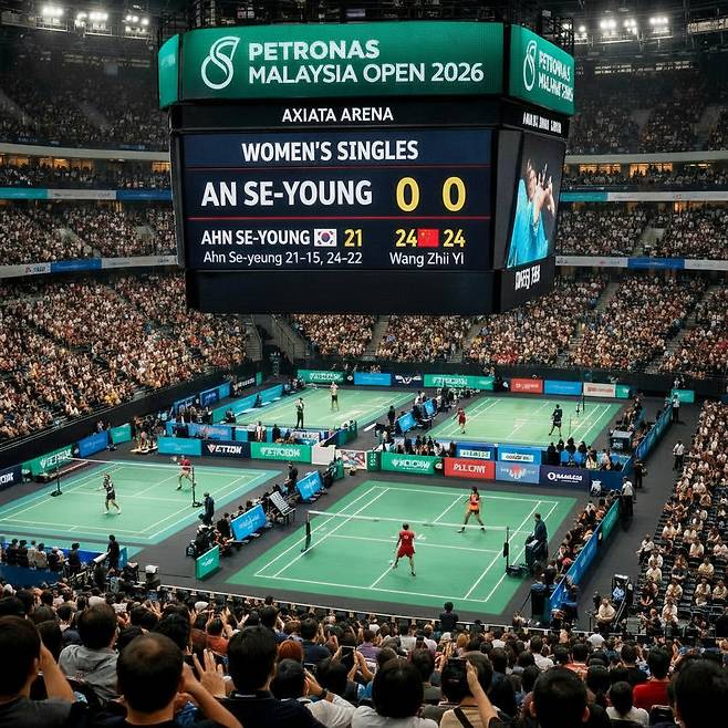 2세트 24-22, 왕즈이의 꿈을 짓밟은 여제의 '뒷심' 1세트를 21-15로 따낸 안세영은 2세트에서 왕즈이의 필사적인 반격에 부딪혔다. 20-20 듀스부터 22-22까지 이어진 피 말리는 시소게임, 3주 전 왕중왕전처럼 3세트까지 끌고 가려던 왕즈이의 의지는 안세영의 철벽 수비 앞에 무너졌다. 안세영은 끝내 24-22로 2세트를 마무리지으며 무결점 승리를 완성했다.