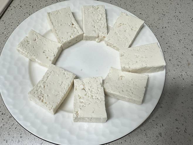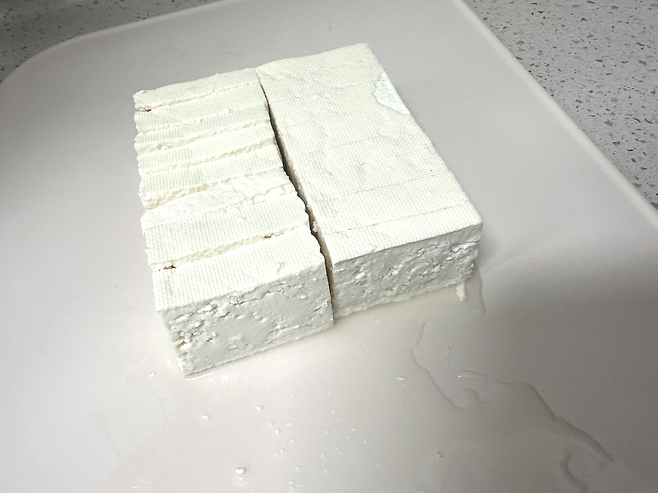 두부를 꺼내보면 넣기 전과 다르게 사진만 봐도 쫄깃해져 보이는 것이 느껴지실 텐데요.