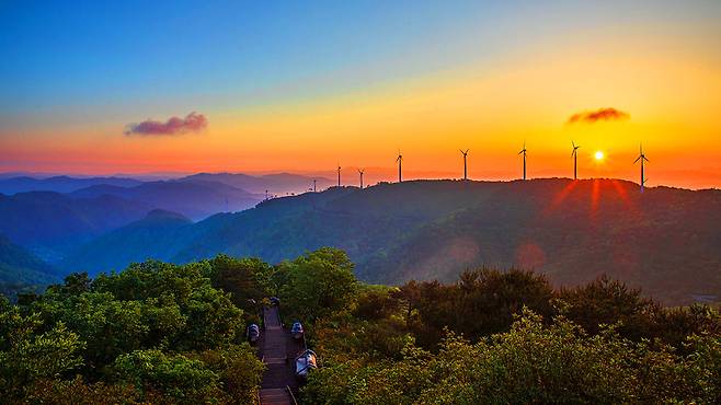 한우산의 가장 큰 매력 중 하나는 바로 차량으로 정상까지 올라갈 수 있다는 점입니다.잘 정비된 도로는 의령 최고의 드라이브 코스로 손꼽히며, 부담 없이 찾을 수 있어 가족 단위 방문객이나 중장년층에게도 인기가 높습니다.