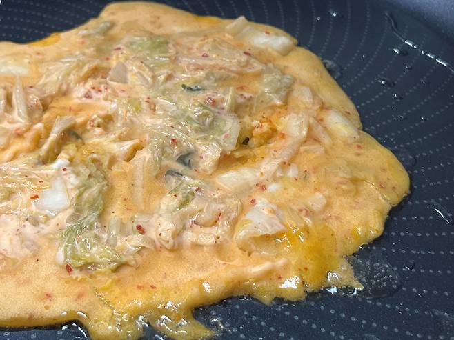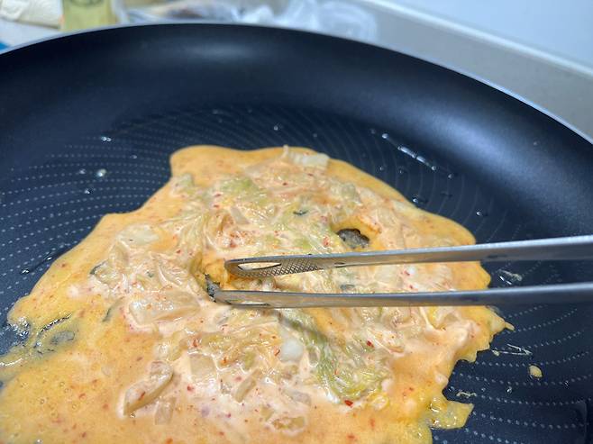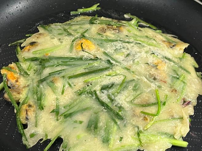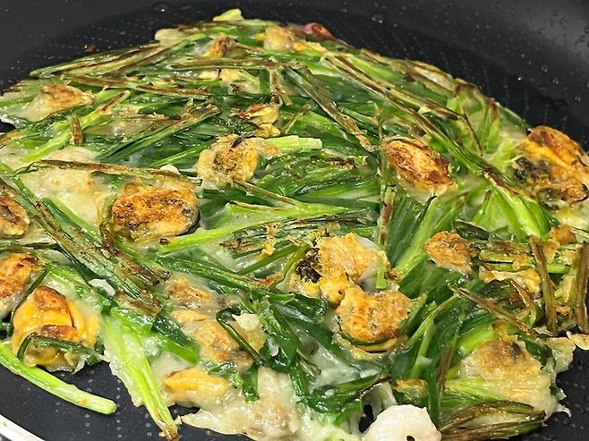 또한 구멍이 있으면 열이 안쪽까지 더 빠르게 전달돼 속까지 고르게 익습니다. 특히 부추전, 김치전처럼 속 재료가 많은 부침개에 효과적이며, 구멍은 크게 낼 필요 없이, 증기 빠져나갈 정도로만 작게 여러 개 내주세요.