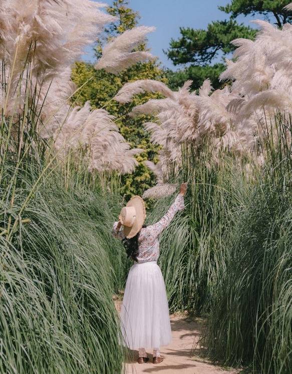 사람 키를 훌쩍 넘기는 팜파스는 가을바람에 살랑살랑 흔들리는 모습이 마치 손을 흔들며 인사하는 듯한 신비로운 장관을 연출합니다.