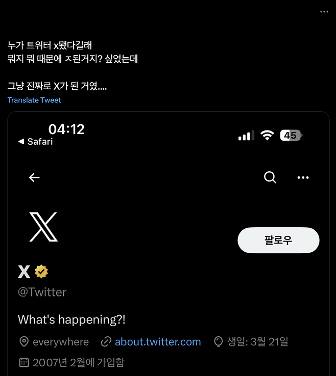 반발이 매우 심한 것 같은데, 특히 한국 유저들은 X가 되어버린 트위터를 보면서...