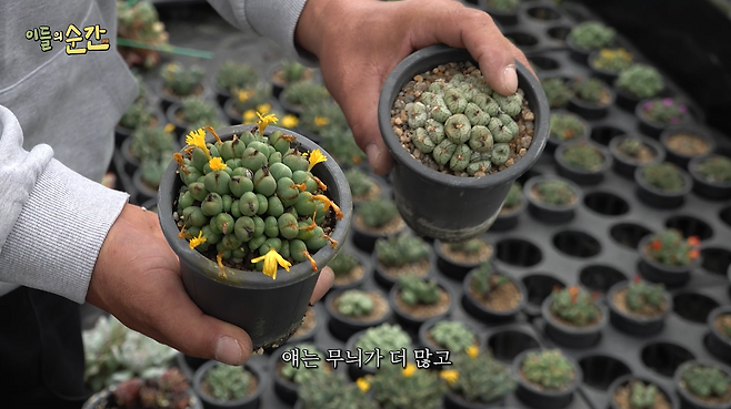 선인장 수출액의 대부분은 접목 선인장인 ‘비모란’이 차지한다. “비모란이란 엽록소가 없어 빨간색, 노란색, 주황색 등을 띠는 선인장으로 접목 선인장의 상단부에 배치하는 용도로 활용되죠. 저도 과거에는 접목 선인장 농사를 했는데요. 요즘은 안 하고 있습니다. 돈이 안 돼요. 30년 전 300원이었는데 아직까지 500원 밖에 안하거든요.”