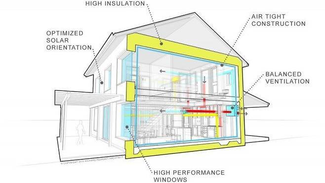 한 문장으로 설명하면 고효율 에너지 주택이다. 이 정의를 PHI가 밝힌 정의를 따라 좀 더 구체화하면 다음과 같다.