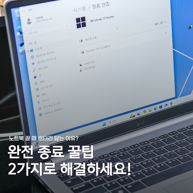 이걸 해결하려면? 완전 종료를 해야 한다는 사실! 저도 이걸 깨닫고 나서 노트북 배터리가 훨씬 오래 가더라고요.